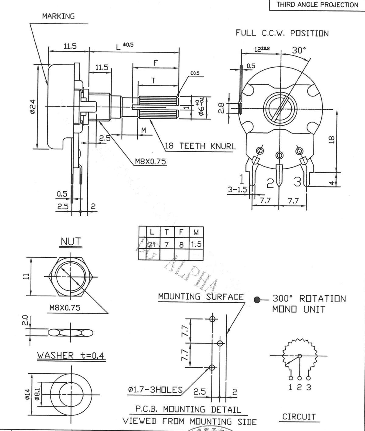 potenciómetro es del tamaño de una moneda de 25 centavos.